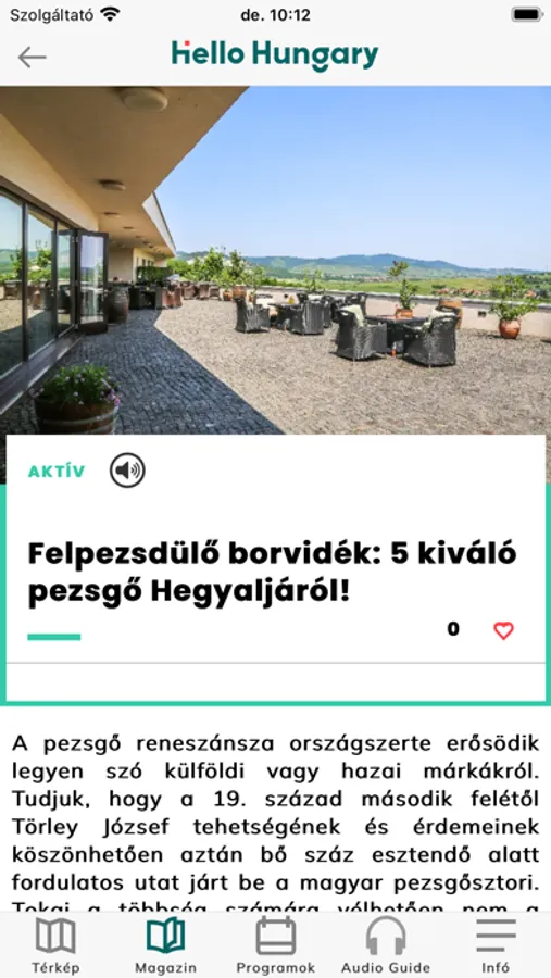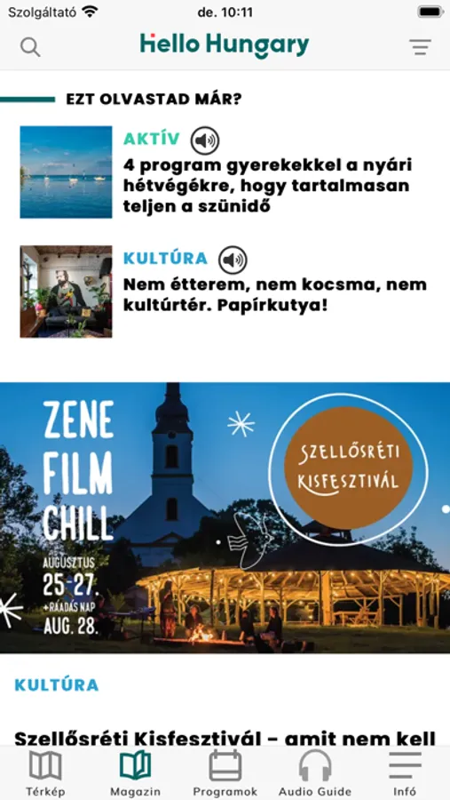 The backbone of the content of the online magazine is readable articles, which can now be listened to on Spotify, as well as recent news and engaging video content. Recommending the active, gastronomic and cultural tourist destinations of the destinations to the attention of visitors, especially those that can be visited by families and sustainable business models. The event calendar builds on attractive rural events, be it concerts, festivals or sporting events. In addition to the popular destinations, the portal also tries to present the "hidden" destinations and sights, by including the natural and cultural treasures assessed by the editors in top lists, as if giving secret tips to those who want to travel. The videos and VR content presenting the regions, as well as the Facebook and Instagram pages of the portal, also have narration that encourages domestic travel.