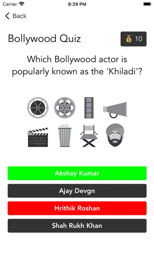 Challenge yourself with multiple-choice questions. With each correct answer, you'll earn points, allowing you to progress and showcase your Bollywood prowess.