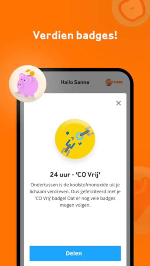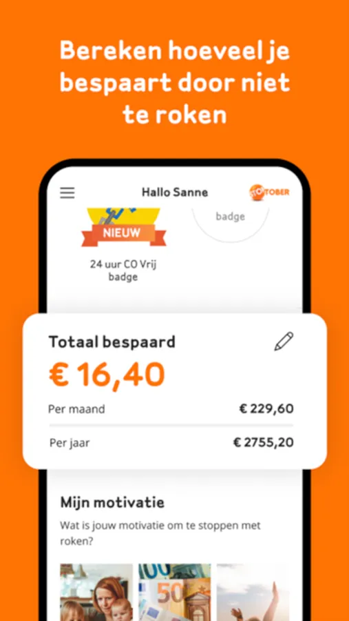 Voer het aantal sigaretten in dat je dagelijks rookt en hoeveel zo'n pakje kost. De app berekent voor jou hoeveel je elke dag bespaart. Vanaf 1 oktober zal de app je 28 dagen lang begeleiden bij het stoppen met roken. Als je een terugval hebt, kun je de app gemakkelijk resetten om opnieuw te beginnen.