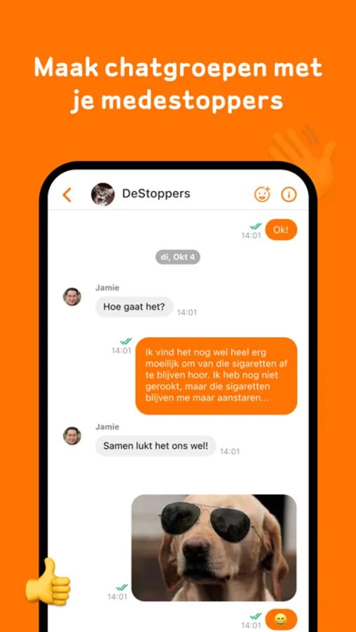 - Je kan chatgroepen maken met medestoppers om elkaar te ondersteunen