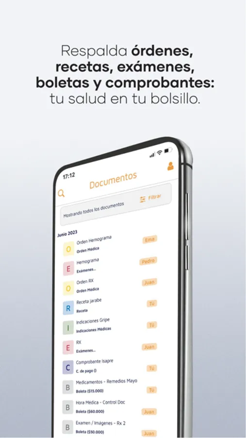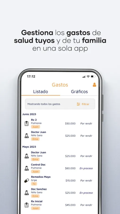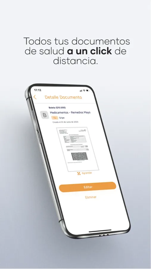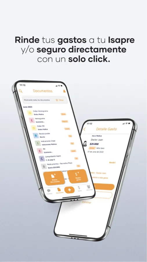 Sube y gestiona tus gastos de salud de forma simple. Adjunta fotos de boletas y comprobantes, y ríndelas a tu Isapre y/o Seguro Complementario al instante. Administra todos tus documentos en un solo lugar: recetas, órdenes e indicaciones médicas, exámenes, etc. Accede a gráficos e información para entender tu gasto en salud, tanto personal como el de tu familia.