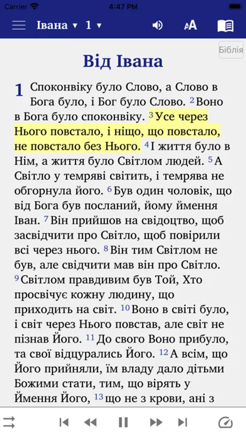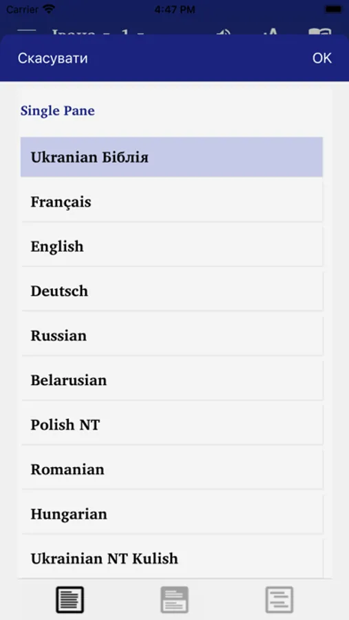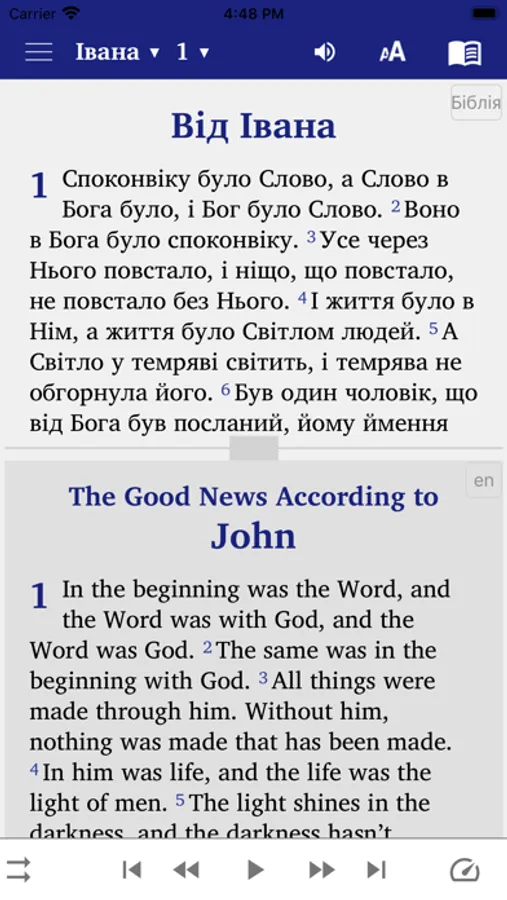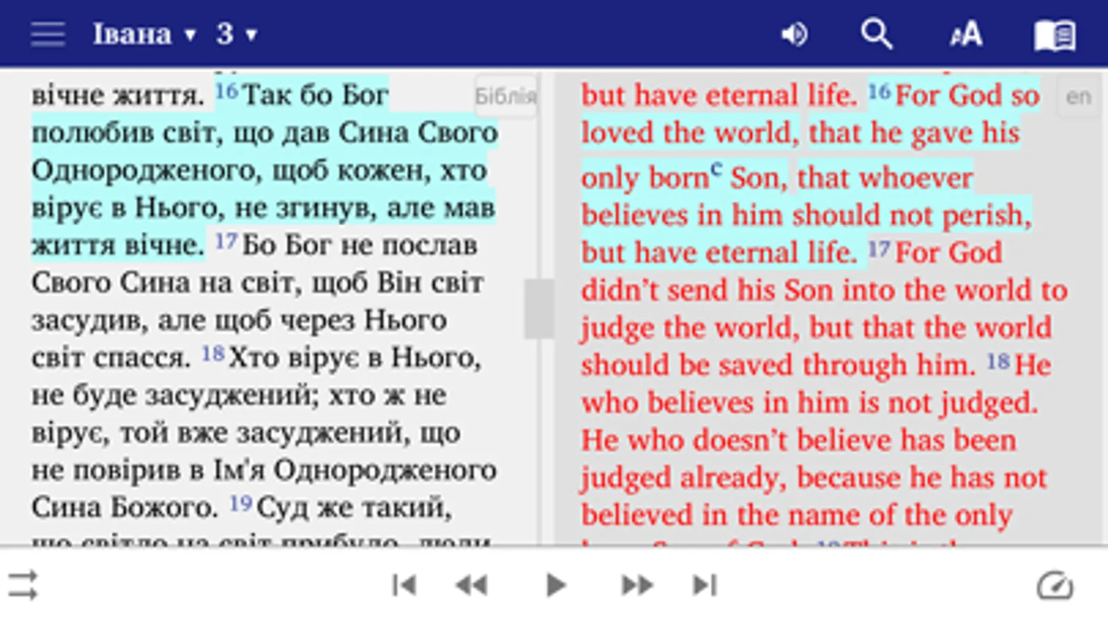 This app contains the Word of God in several languages: 1) Ukrainian, 2) English, 3) French, 4) German, 5) Russian, 6) Belarusian, 7) Polish, 8) Romanian, 9) Hungarian, 10 Ukrainian NT Kulish, 11) Ukrainian NT and Psalms Biblica