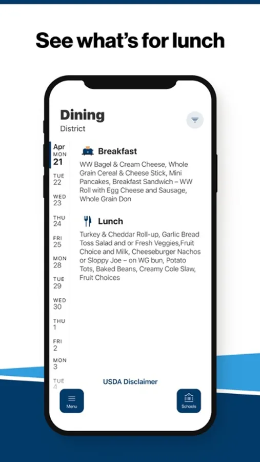 Within the dining section, you’ll find an easy to navigate, weekly menu, sorted by day and meal type.