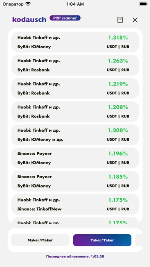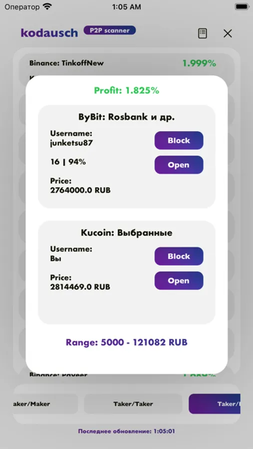С его помощью вы сможете максимально быстро проводить анализ всех возможных связок для P2P арбитража на 5 криптобиржах: Binance, Huobi, ByBit, Mexc и Kucoin