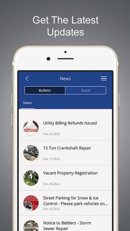 Report issues within your city like water leak and park maintenance straight from the app. Track reports and receive updates directly from the city staff.