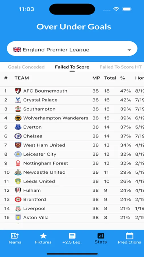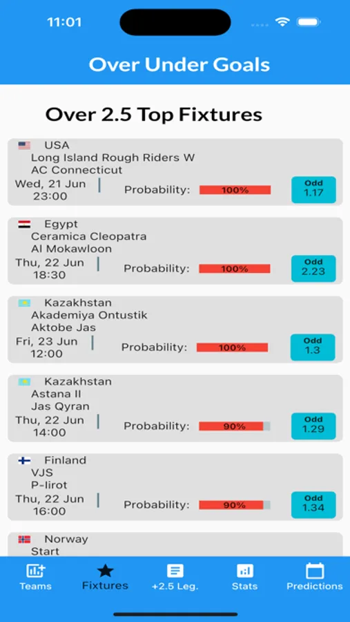 Our betting experts, combined with modern predictive machine learning models give you more options like total goals, away or home over and under goal.