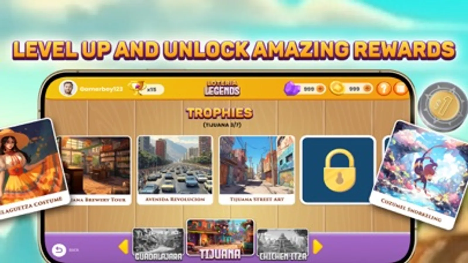 Discover the dynamic, festive world of Loteria Legends, a game that beautifully reimagines the classic Mexican Loteria. Set off on a captivating journey through magical Mexican destinations, commencing your adventure from the ancient city of Chichen Itza, all on your mobile device.