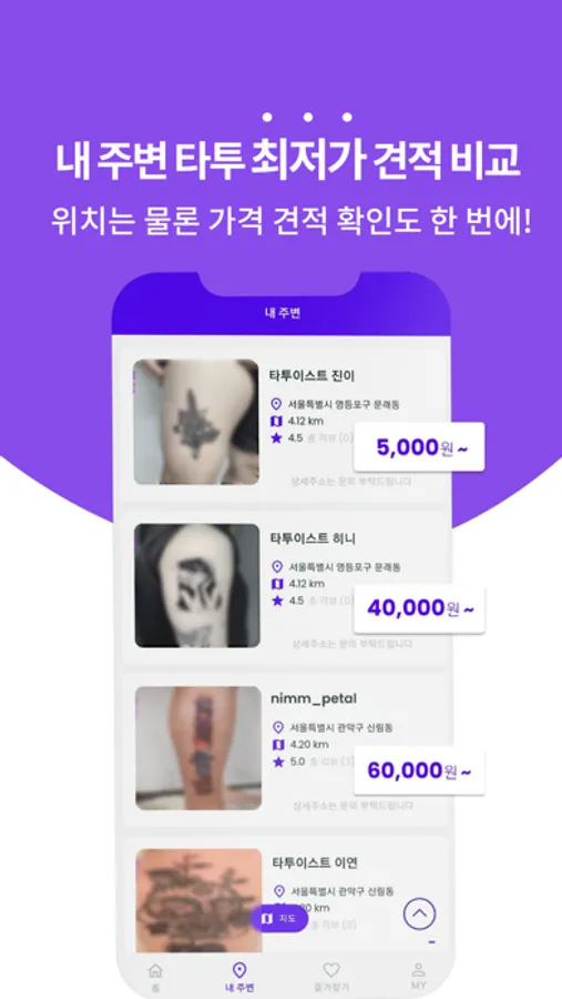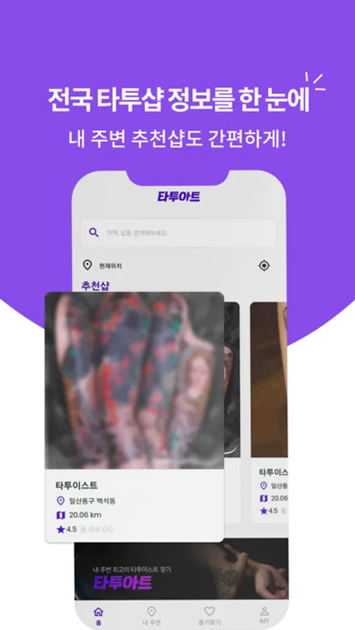 나와 가까운 지역의 실력 있는 타투아티스트를 만날 수 있습니다.