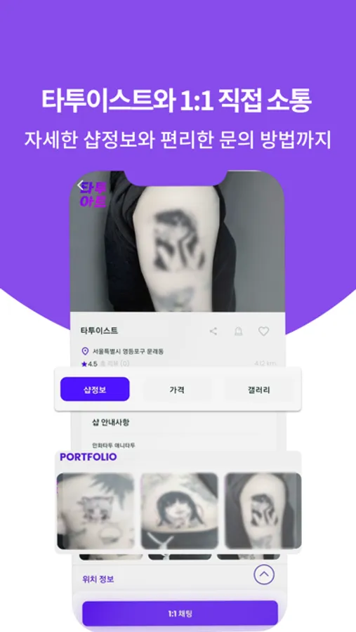 -타투이스트를 찾아 내가 원하는 타투 작품을 받을 수 있습니다.