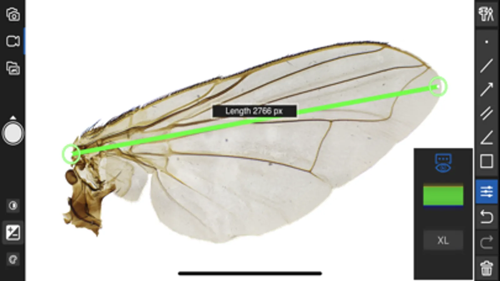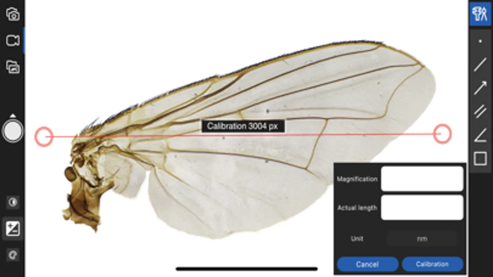 AccuView (v2.0) is a mobile app specifically developed for use with the ACCU-CAM WiFi cameras from ACCU-SCOPE Inc. and UNITRON Ltd.  AccuView allows the user to use their mobile device to view live images, capture images, or capture video from the ACCU-CAM WiFi camera (the mobile device connects to the camera via 5G IEEE 802.11ac signal).  AccuView also permits camera control with functions such as image, exposure, contrast, saturation, and gain adjustments.  AccuView offers a selection of measurement tools and, after calibrating the camera using the app and a stage micrometer, accurate measurements of features in the sample image can be made.