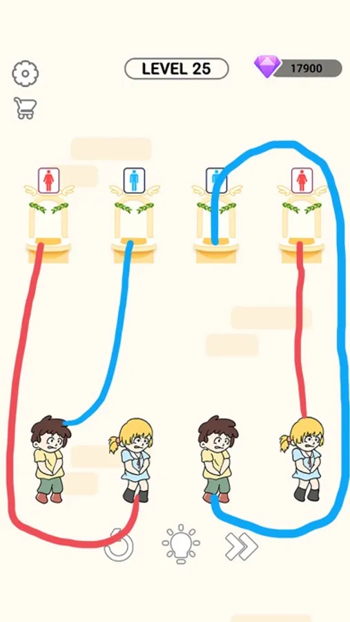 Swipe your finger to draw a path and help your favorite character find the toilet quickly. Can you guide him on the right path and find the toilet on time?