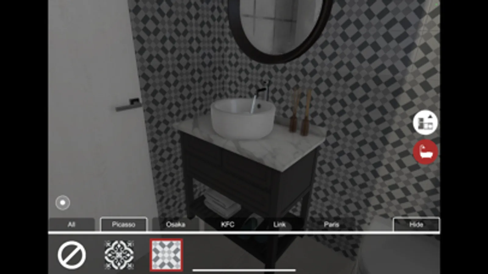 Preview several unique tiles for kitchens and bathrooms using AR.