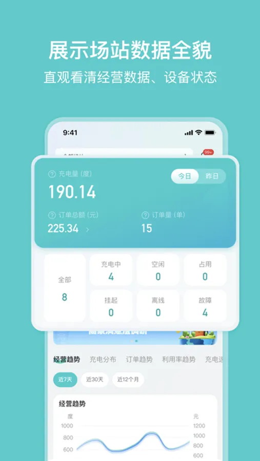 小桔慧充是小桔充电旗下一站式充电站管理系统,为充电站经营者提供全方位的经营管理服务。包含以下功能:充电实况、订单管理、结算日报、经营分析、车位管家、安全管家等,持续为充电站经营保驾护航。