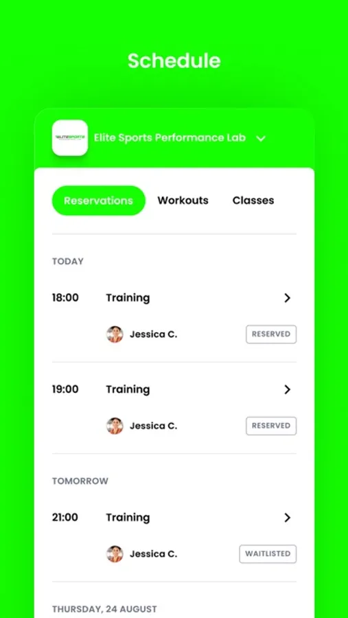 For members of Elite Sports Performance Lab to reserve their place in a class, sign up for gym events, and general account management like updating headshots and credit card on file.