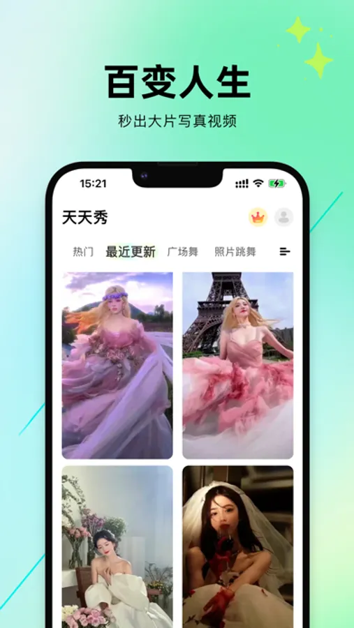 天天秀 - 超有趣的视频和图片编辑软件。提供热门视频、漫画风和背景图模版,让你也能轻松获得潮流自拍!