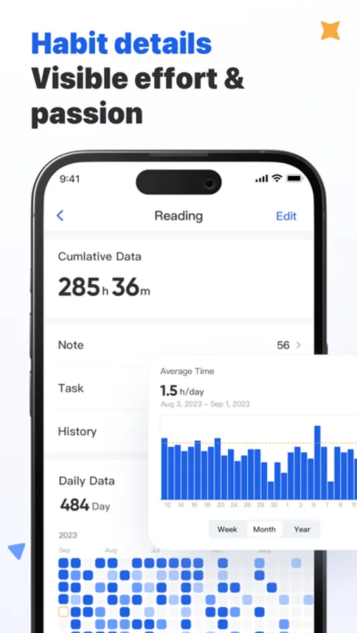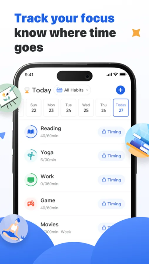 3) Setting goals: Each habit has its own independent goals, giving meaning and direction to your time tracking.