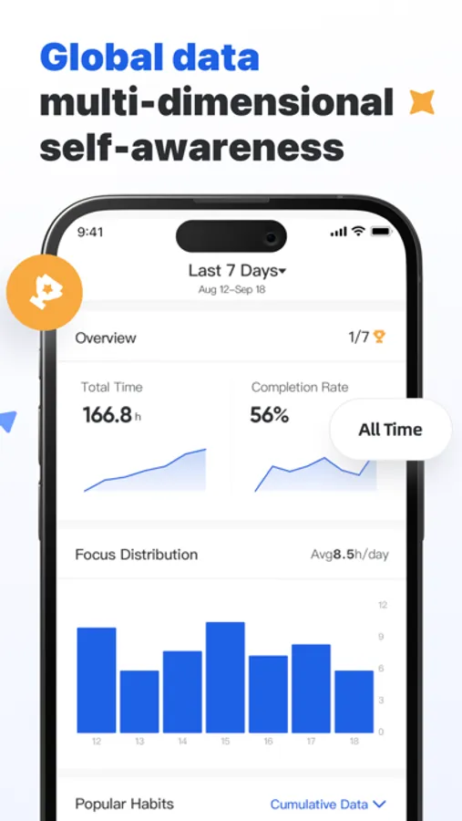2) Rich data statistics: You can see where you spend the most time horizontally and the time distribution between good and bad habits.