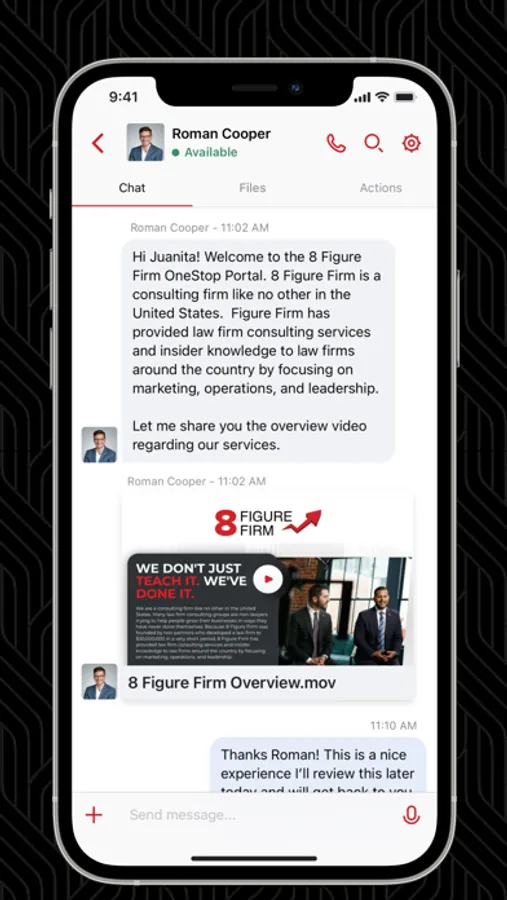 The 8 Figure Firm App enables you to connect with our team and access your important information, all in one place. Use the app to send secure messages, attend video meetings, share and e-sign documents, annotate files, and more. With 8 Figure Firm, you’ll have the tools you need to manage your strategy and collaborate with colleagues in real-time.