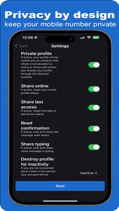 • Settings to define messages that self-destruct on reading or timed