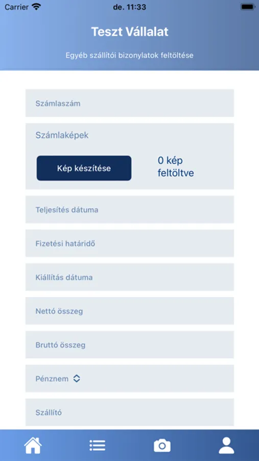 Az ügyfél könnyedén tud az applikáción keresztül bizonylatokat feltölteni a rendszerbe, megtakarítva ezáltal a szkennelési és a számítógépen keresztüli feltöltési időt.