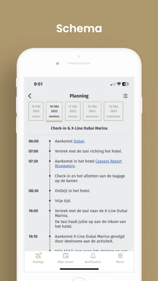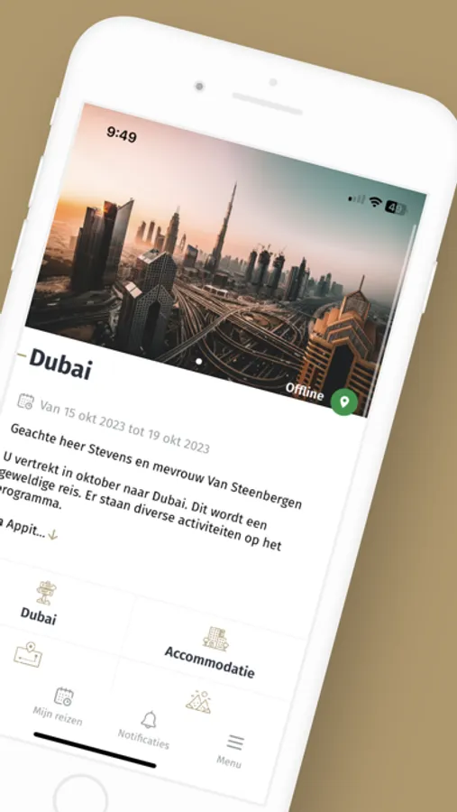 Alle reisdocumenten zoals vliegtuigtickets, hotelvouchers, excursiereservaties, enzomeer... onmiddellijk online en offline te raadplegen. Wordt uw planning lastminute gewijzigd? Dan zorgen wij dat dit onmiddellijk zichtbaar is in uw Voyage Unique-applicatie. Even refreshen en klaar!