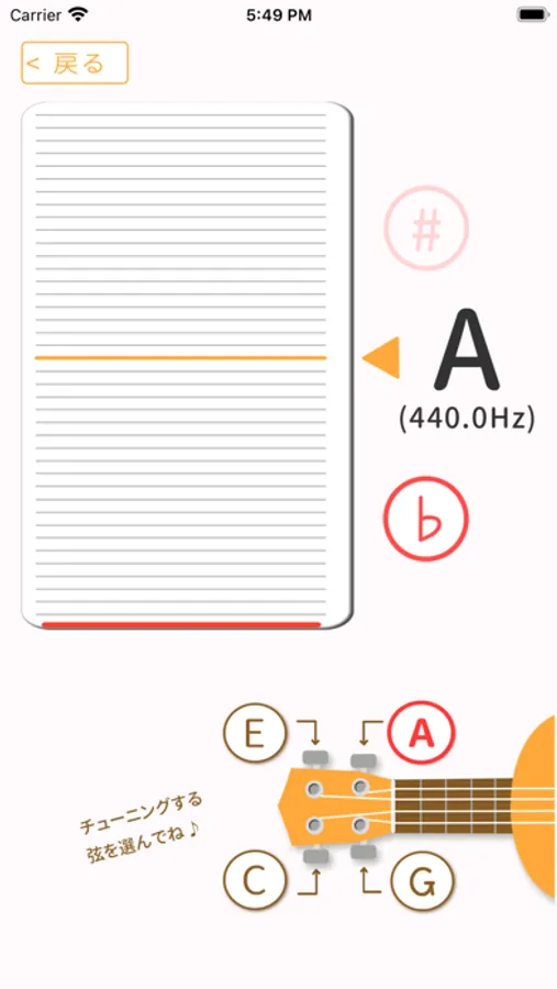 ウクレレの基本的なチューニング(G・C・E・A)に合わせてあります。