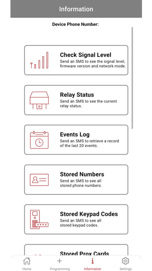 - Program Dial Out Numbers, Caller ID access & Keypad codes via SMS.
