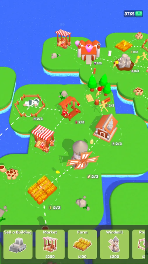 Sell your resources, buy new buildings and get better resources. Use new resources to produce better value goods. Connect all buildings to each other to make a resource chain. Start from zero and build a fully functional village. The sky is the limit! Start now!