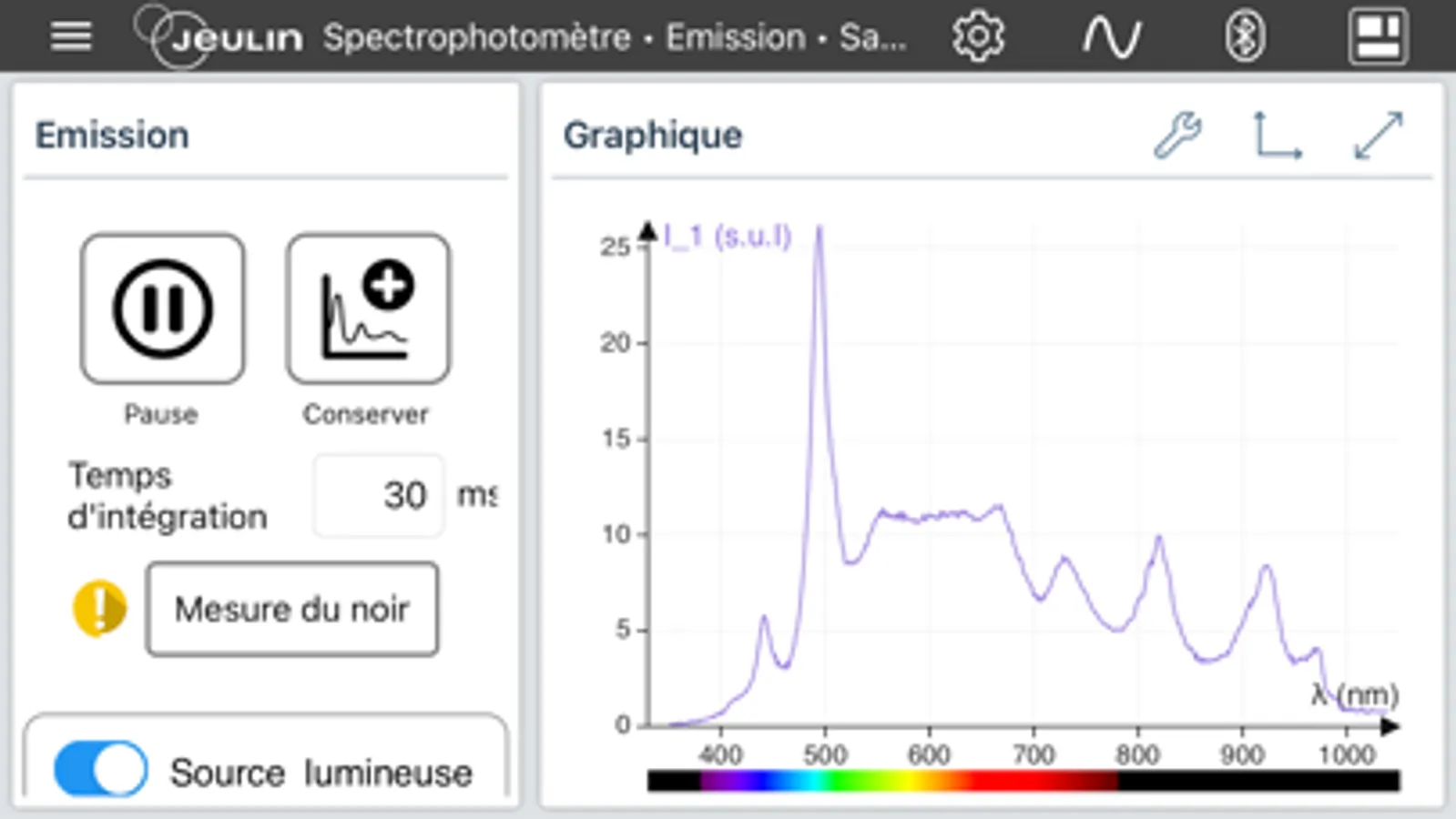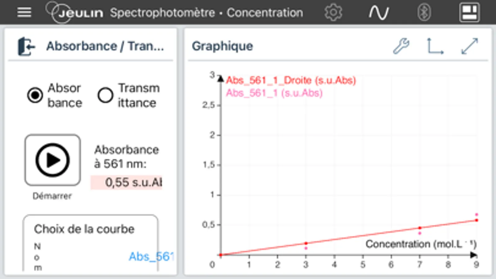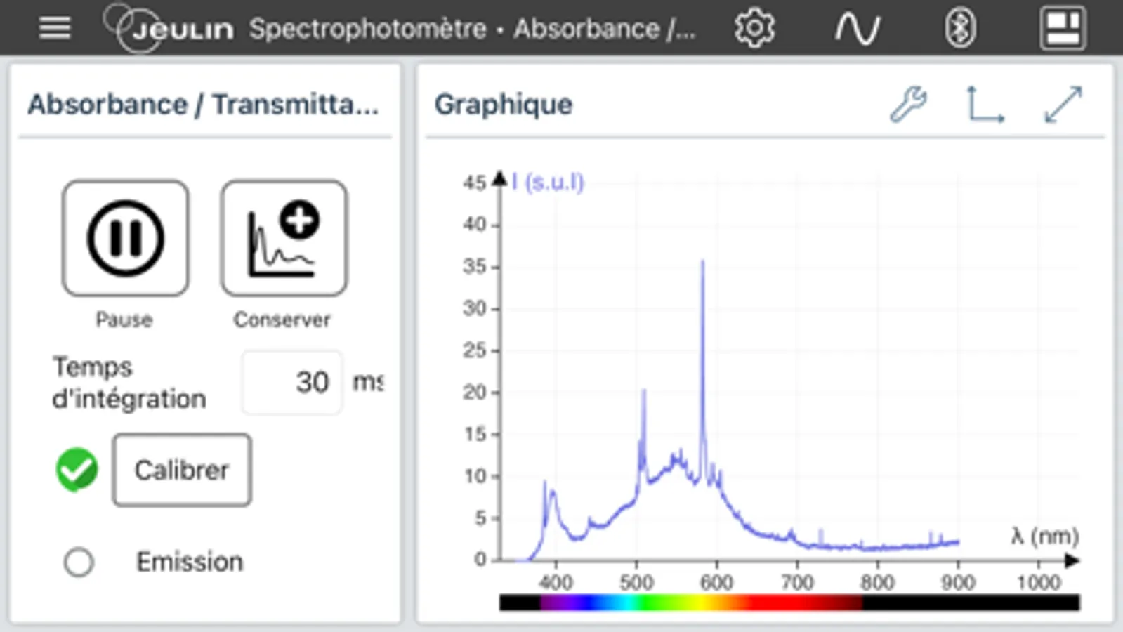 Application specifically developed and dedicated to the use of the Jeulin spectrophotometer ref.705414/705432 in bluetooth mode.