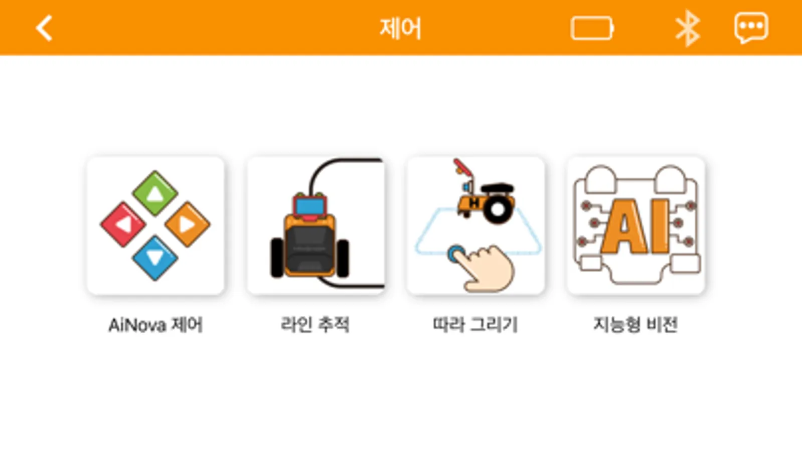 소프트웨어 AiNova kr의 블루투스 연결 로봇을 통해 휴대폰과 로봇의 상호 작용을 실현합니다.로봇의 전진과 후퇴, 색등 및 순선 등을 제어할 수 있다.이 앱이 우리의 좋은 파트너가 될 수 있다고 믿습니다.