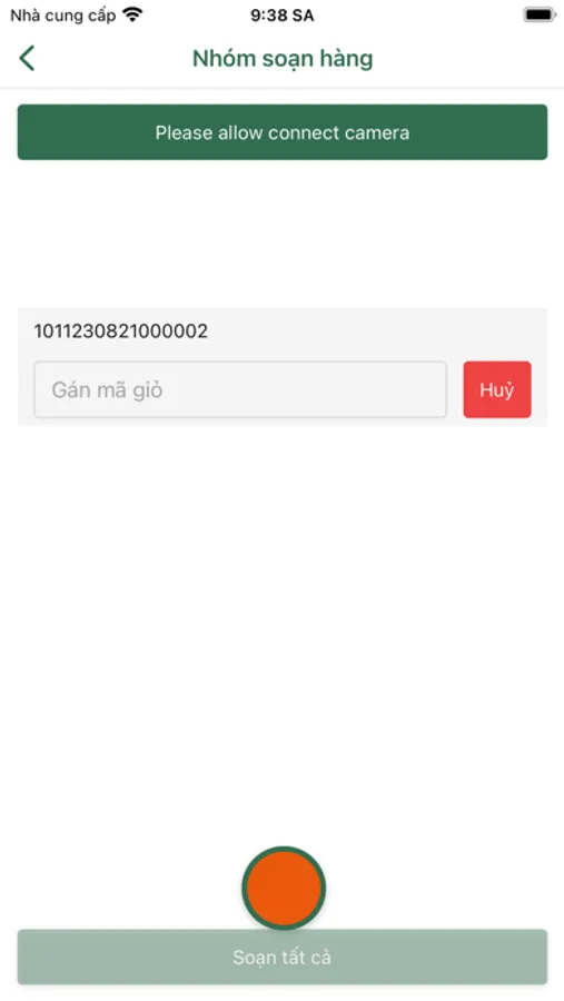 Màn hình 3: Quét các mã giỏ sẽ đưa sản phẩm vào (mã giỏ sẽ sử dụng để lấy hàng cho nhóm soạn này)