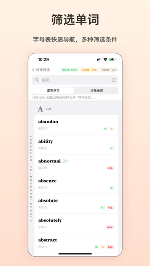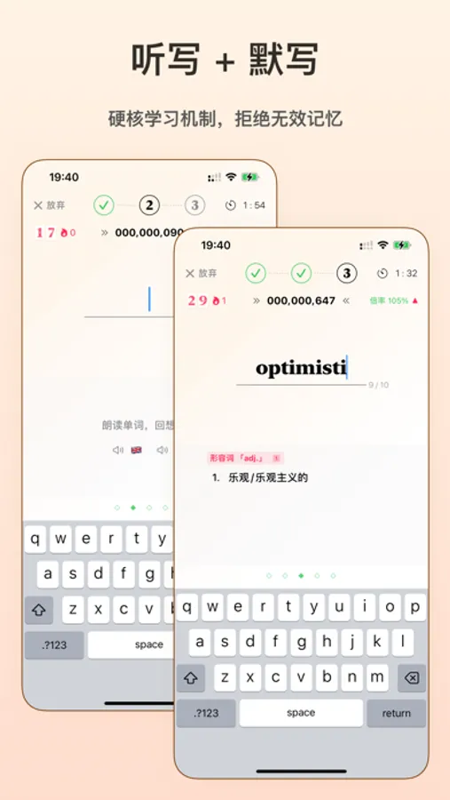 嗯背单词采用的分层筛选学习模型,彻底抛弃艾宾浩斯曲线,学习速度可提升十倍以上。