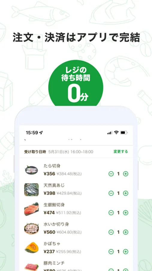 3. 売場からお届け希望日時を選び、欲しい商品を選んだ後カート画面から注文確認に進む