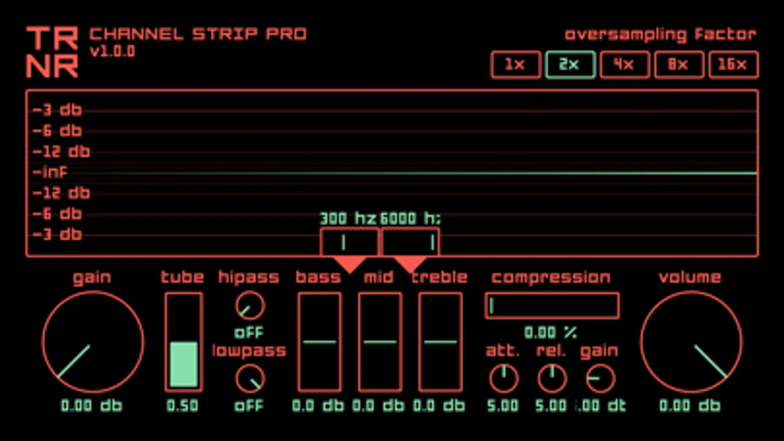 ChannnelStrip Pro is a modeled tube preamp with high-/lowpass filters, 3 band EQ, compressor and oscilloscope available as a standalone app and AUv3 plugin.