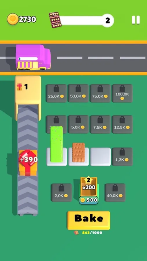 As the packages move along the conveyor belt, the cookies magically transform into valuable coins. Witness the sweet transformation before your eyes as each cookie package adds to your growing wealth. Collect as many coins as you can to unlock exciting bonuses and power-ups, enhancing your gameplay experience.