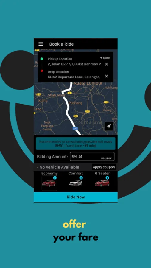 Ride-up is the new way of ride-sharing in Malaysia. It's more than just a ride hailing app. It's a ride-sharing platform that gives you more control, fair prices, and safety features.