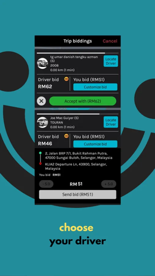 - We let you choose the driver based on their price, car model, arrival time, and more. We don't assign you a random driver who may not meet your expectations or needs. We let you pick the driver who offers the best value and service for your ride.