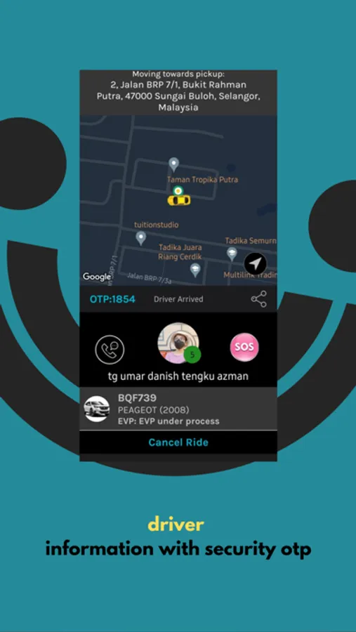 - You can share your ride with your contacts for extra safety. You can send your trip details to your family or friends, so they can track your location and status. You can also contact them in case of emergency or any issue.