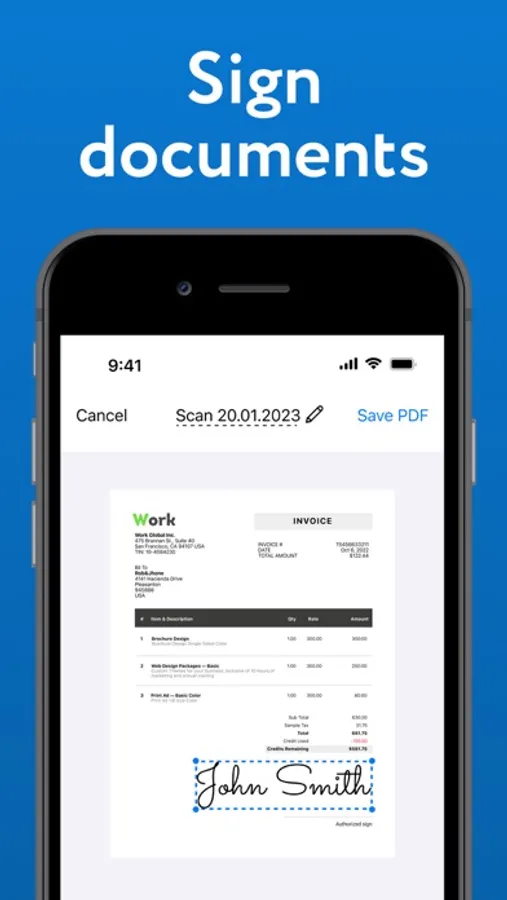 1. Sign documents effortlessly: Say goodbye to paperwork! Instantly sign scanned documents and PDFs with precision and ease, from the palm of your hand!