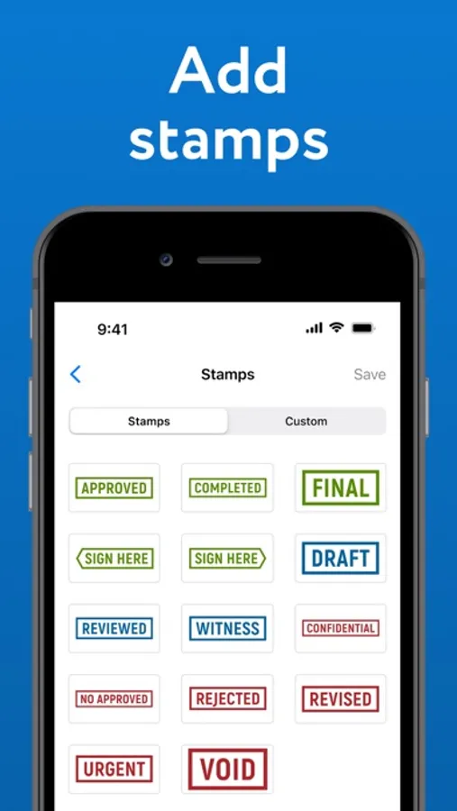 2. Use custom stamps to professionalize your documents: Use distinctive stamps to make your mark. Customise and add professional-looking stamps to your documents. Make a lasting impression on clients and colleagues!