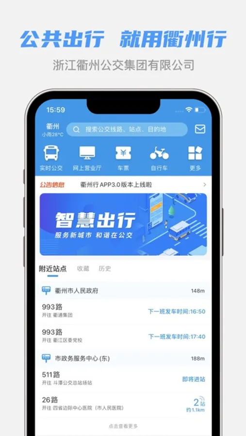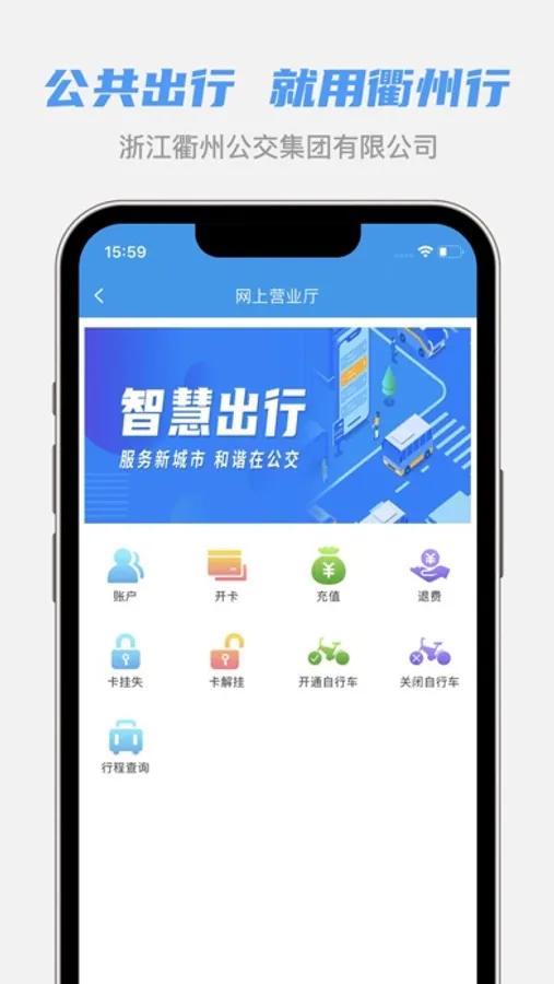 “衢州行APP”是浙江衢州公交集团有限公司面向衢州市民推出的一款集“公交卡业务网上办理、实时公交查询、扫码乘车和租借自行车等功能为一体的智慧出行移动应用。