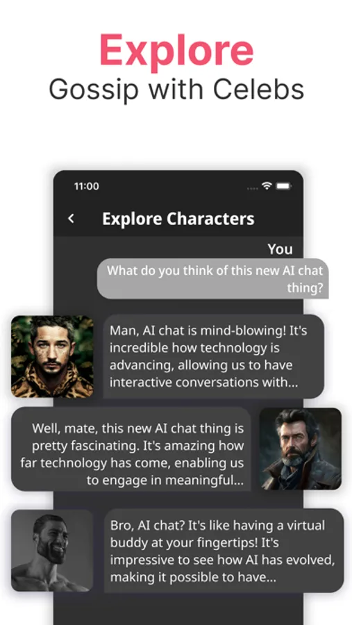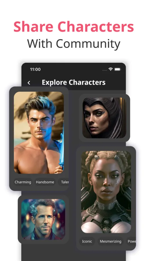 Share your characters with friends and so that they too can interact with them in realistic conversations. Discover new perspectives as your characters engage with different individuals. Connect and communicate like never before!