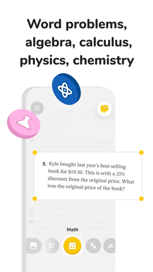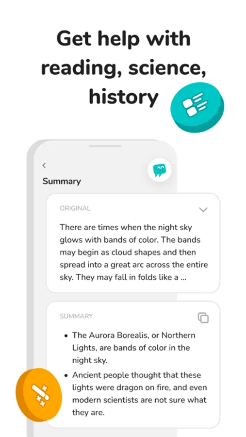 Use the math, chemistry, and physics lens for step-by-step solution steps. It even works with word, multistep, and multiple-choice problems. Try the Summary lens to summarize any text to understand any reading with ease quickly. Use the translation lens to easily understand text in over 100 languages, including Spanish, French, Portuguese, Chinese, Japanese, Arabic, and more. Our magic Do Anything lens is your secret weapon; take a picture and give Studdy instructions on how it can help you. The Biology lens will help you ace your classes with the help of short answer questions and key concepts. More lenses with every update!