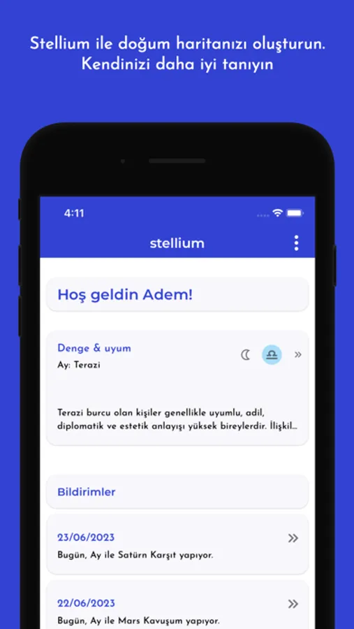 Stellium, astroloji dünyasına adım atmana yardımcı olan güçlü ve kullanıcı dostu bir yapay zeka tabanlı uygulamadır. Kişiye özel astroloji analizleri ve günlük öngörüler sunarak, hayatının her alanında size rehberlik eder.