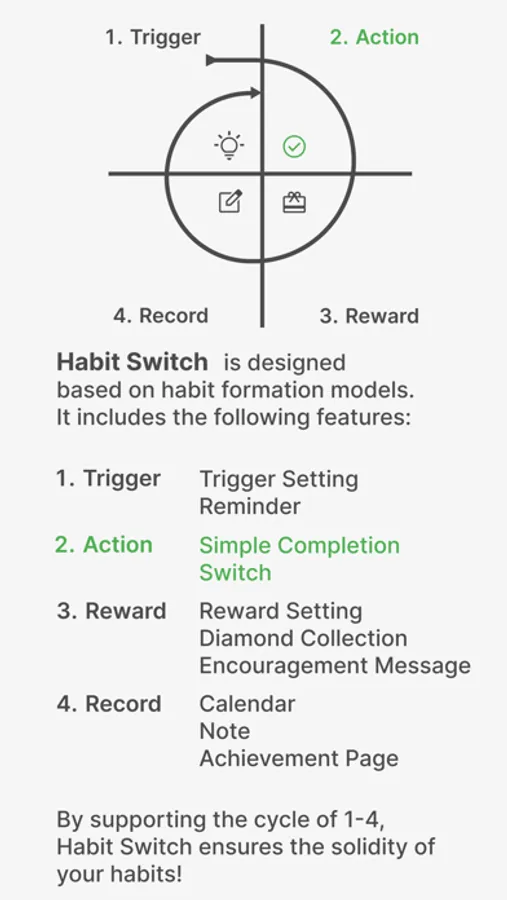 This is the difference from other habit-forming apps, and the reason why you can succeed in habit formation with Habit Switch.