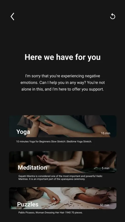 ⁃ yoga, meditation and breathing are videos which are easy to follow at any level of experience
