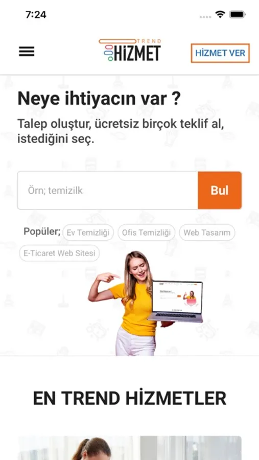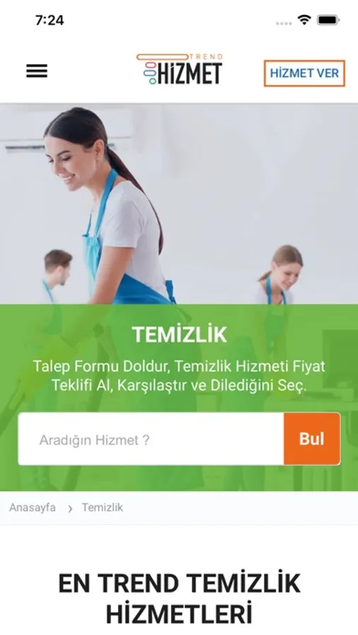 Trend Hizmet temizlik hizmeti başta olmak üzere tamirat tadilat işleri, nakliyat ve organizasyon çözümleri konusunda kapsamlı bir hizmetin içerisinde yer almaktadır. Hizmet alanla hizmet sunanı tek çatı altında buluşturmayı hedefleyen Trend Hizmet, nitelikli bir hizmet almanız noktasında profesyonel çözümleri sizlerle buluşturmaktadır.