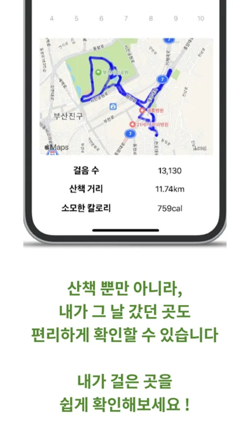 6. '걸은 경로'는 애플워치가 있어야 정상적으로 작동합니다.