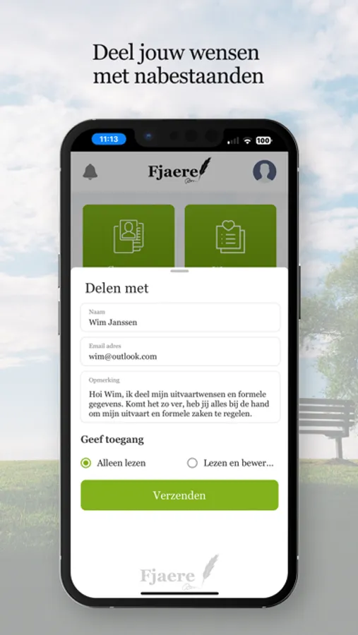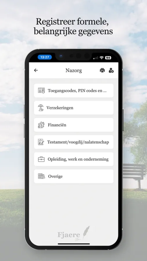 Leg al jouw uitvaartwensen en gegevens vast voor jou en jouw nabestaanden met deze app. Fjaere brengt alles rond overlijden samen.