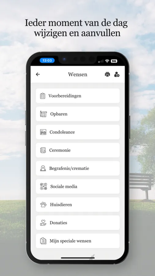 Fjaere biedt iedereen de gelegenheid om persoonlijke wensen voor de eigen uitvaart vast te leggen en z- nodig aan te vullen. Bij overlijden beschikken nabestaanden ook over actuele informatie om praktische en formele zaken te regelen. Op ieder moment van de dag kun je wensen en gegevens wijzigen en aanvullen. In alle rust, alleen of samen met anderen, op momenten dat het jou schikt.